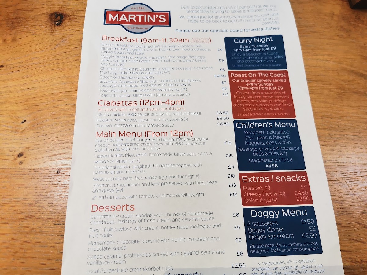 Welcome to Martin's Bar & Restaurant, a delightful culinary destination located at Highlands End Holiday Park in Bridport, UK. This charming eatery shines particularly on Sundays, famous for its hearty carvery featuring a selection of three succulent meats. Guests rave about the generous portions of hot, flavorful dishes, complemented by a variety of classic sides like Yorkshire puddings and cauliflower cheese.